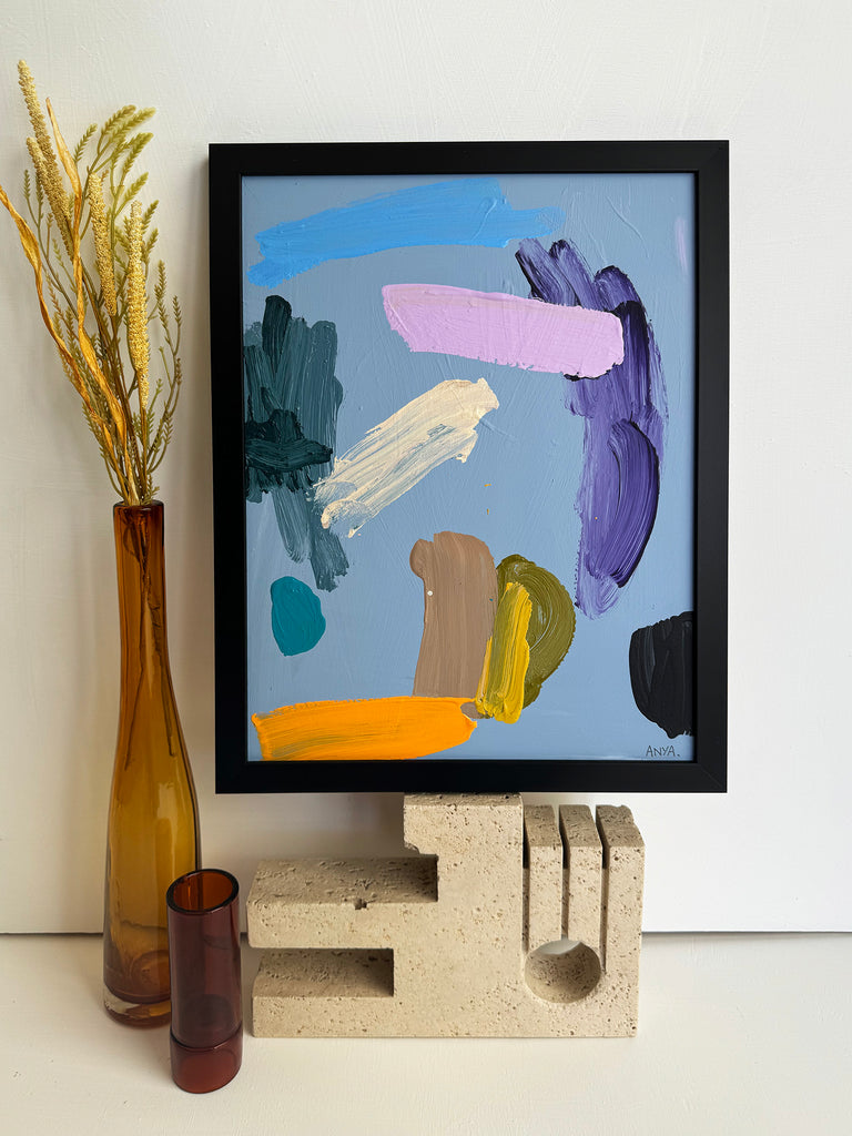 Spontaneous and reactionary, these little swipes were created for small nooks and spaces that need a brighten up. They also serve perfectly to pull together an eclectic wall hang. Gestural and immediate, they feature tight colour palettes and textural brushwork.