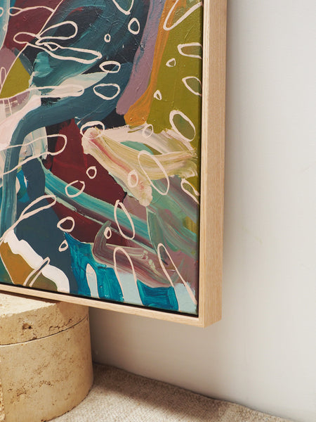The MONSTERA series was born out of a desire to rework old abstract pieces from years past. Using existing shapes and new linework these pieces are a visual puzzle of opacity and texture.